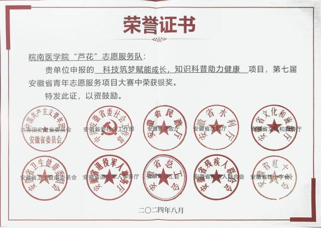 坚持健康教育与志愿服务相融合,在世界防治结核病日、世界艾滋病日、中国学生营养日等活动中逐渐形成了具有专业特色和较强影响力的党建和志愿服务品牌。学院共有4支志愿服务队,获得国家级“优秀团队”、国家级社会实践团队等50余项国家级荣誉,安徽省暑期“三下乡”社会实践优秀团队等100余项省级以上荣誉,其中1支志愿服务队获批国家级青春健康高校项目,1支志愿服务队连续10年获得安徽省百千万志愿者结核病防治知识传播活动大学生志愿者团体一等资助。