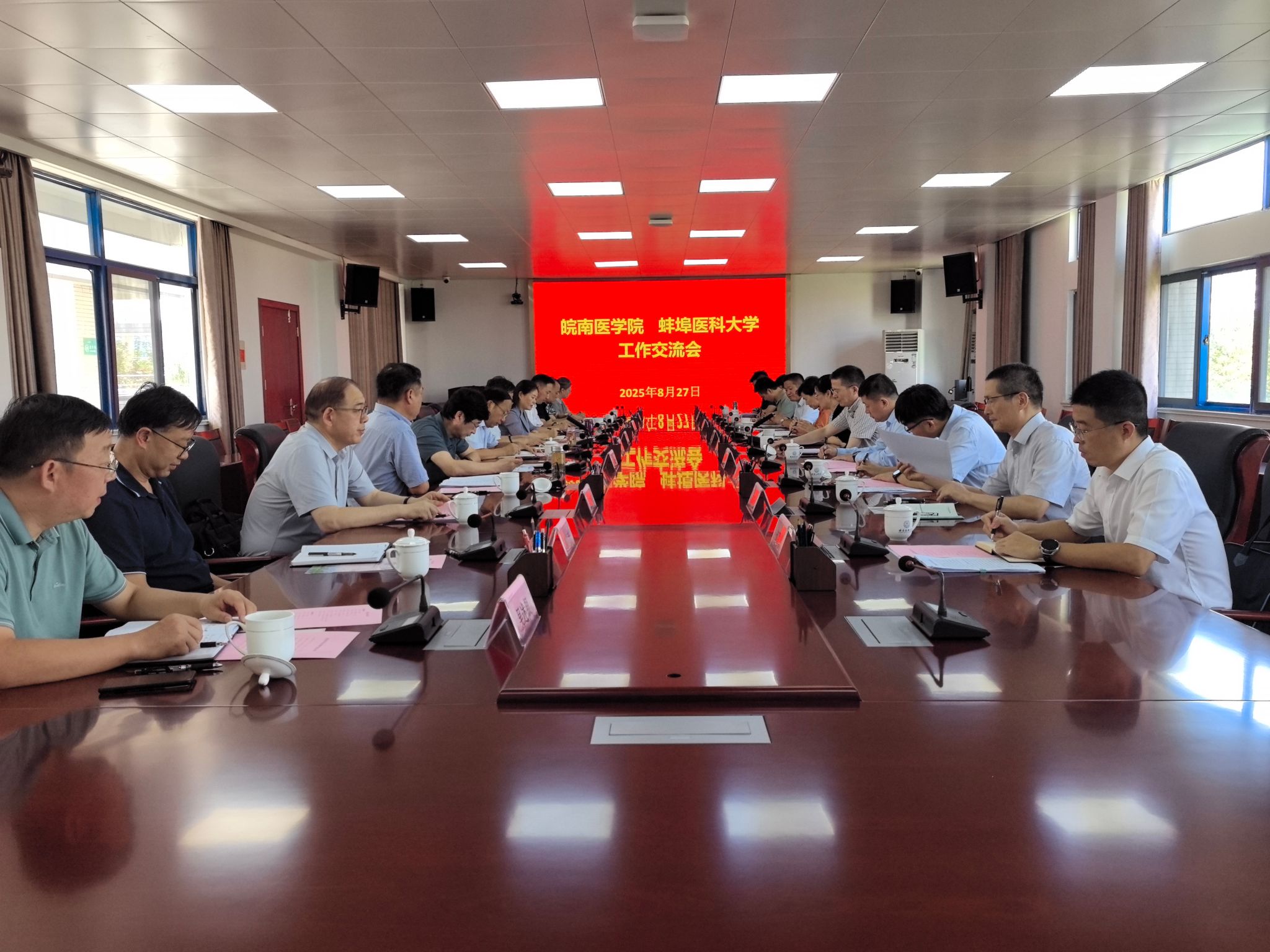 8月27日,校党委书记夏劲松带队赴蚌埠医科大学开展调研交流。蚌埠医科大学党委书记朱立军,党委副书记、校长郑兰荣,党委常委、副校长陈昌杰,党委常委、副校长刘浩会见夏劲松一行。校领导姚应水、贾贤燕、韩永升参加调研。