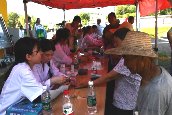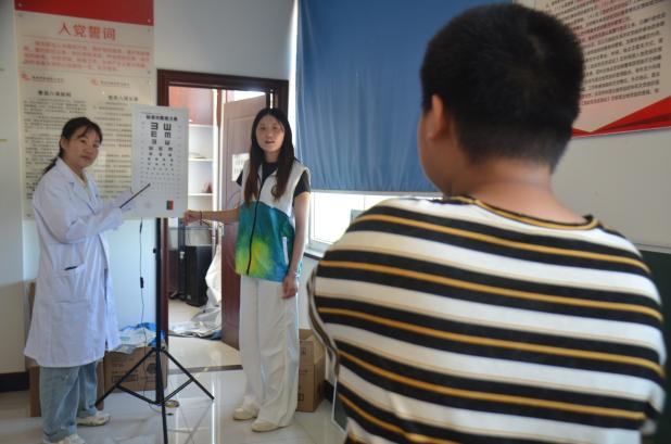 白衣执甲送健康,丹心为民筑长城。为积极响应健康中国战略号召,将医学专业知识转化为惠民实践,提升基层群众健康素养,助力乡村振兴,7月3日,“芦花”志愿服务队前往方村街道开展了义诊活动。本次活动聚焦血压、血糖、体脂检测及儿童视力筛查四大健康服务模块。活动现场,志愿者们分工明确、高效协作,为村民提供全流程健康服务。在基础健康检测区,医护专业学生使用便携式设备为村民测量血压、血糖、体脂。针对暑期儿童近视高发问题,志愿者特别设置视力筛查专区,通过专业仪器检测儿童视力,充分彰显了新时代青年的责任担当与医学人文关怀。