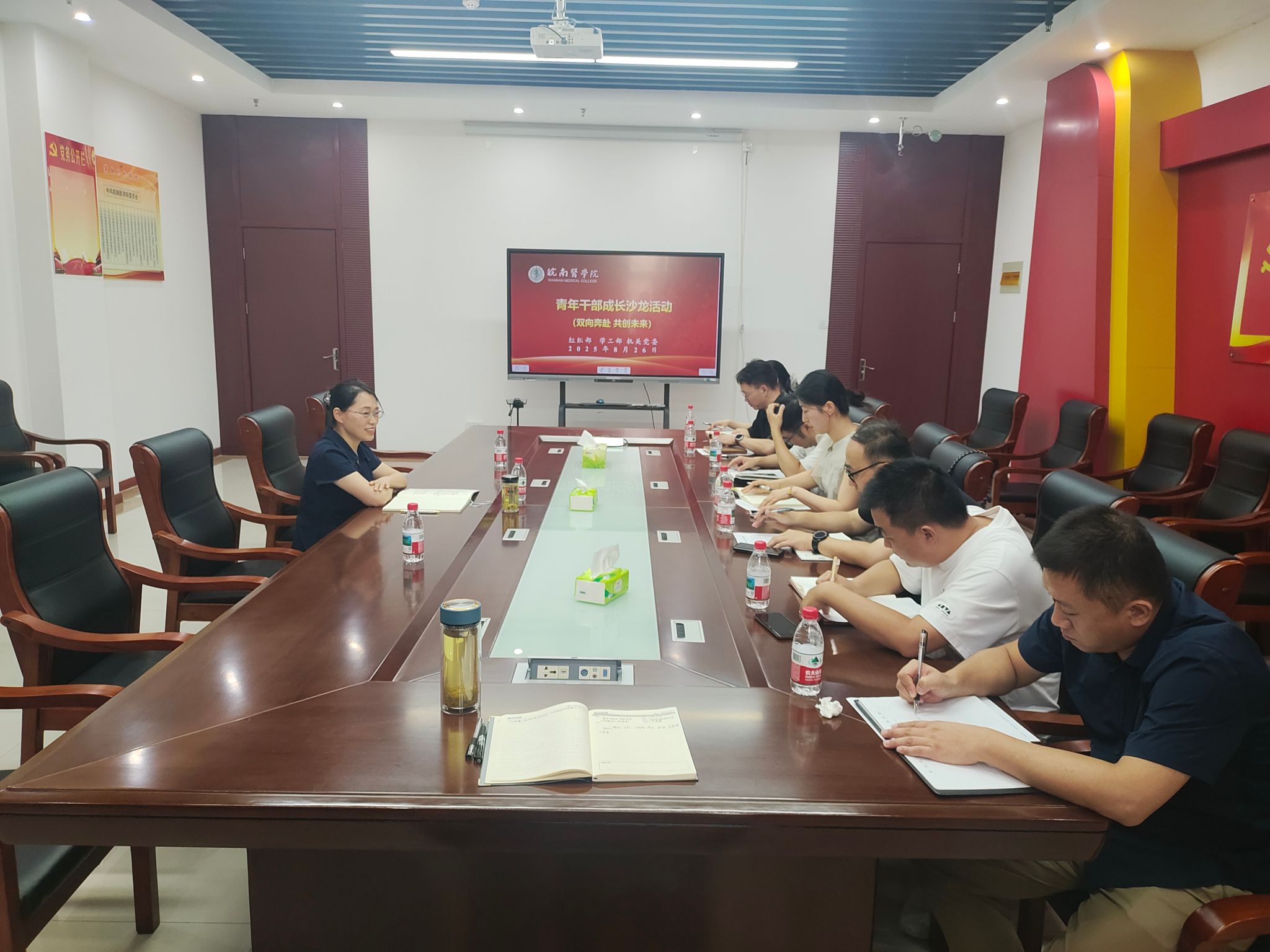 8月26日,组织部、机关党委、学工部联合举办青年干部成长沙龙第三期暨“双向奔赴 共创未来”主题研讨活动。活动由机关党委书记、组织部副部长任苔蓉主持,来自二级学院和管理部门新近调整岗位的7名青年干部参加活动。