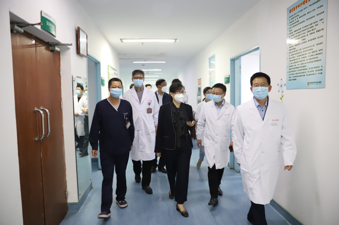 在两所附属医院,夏劲松一行分别走访了门诊、发热门诊、急诊、重症医学科、心血管内科、康复医学科、血液病诊疗中心等科室,实地察看了门诊诊疗秩序、发热门诊流程、急诊“绿色通道”设置、医护人员安全防护、核酸采集检测等情况,并与医护人员进行亲切交流,详细了解医院的疫情防控部署与落实情况,以及学科建设、人才培养、技术创新等。她代表校党委向辛勤奋战在疫情防控一线的广大医护员工表示亲切慰问和衷心感谢,向支援上海、六安等地的医疗队员致以崇高敬意和真诚问候,对医院及时有效的防控措施表示充分肯定,同时对下一步工作提出指导意见。